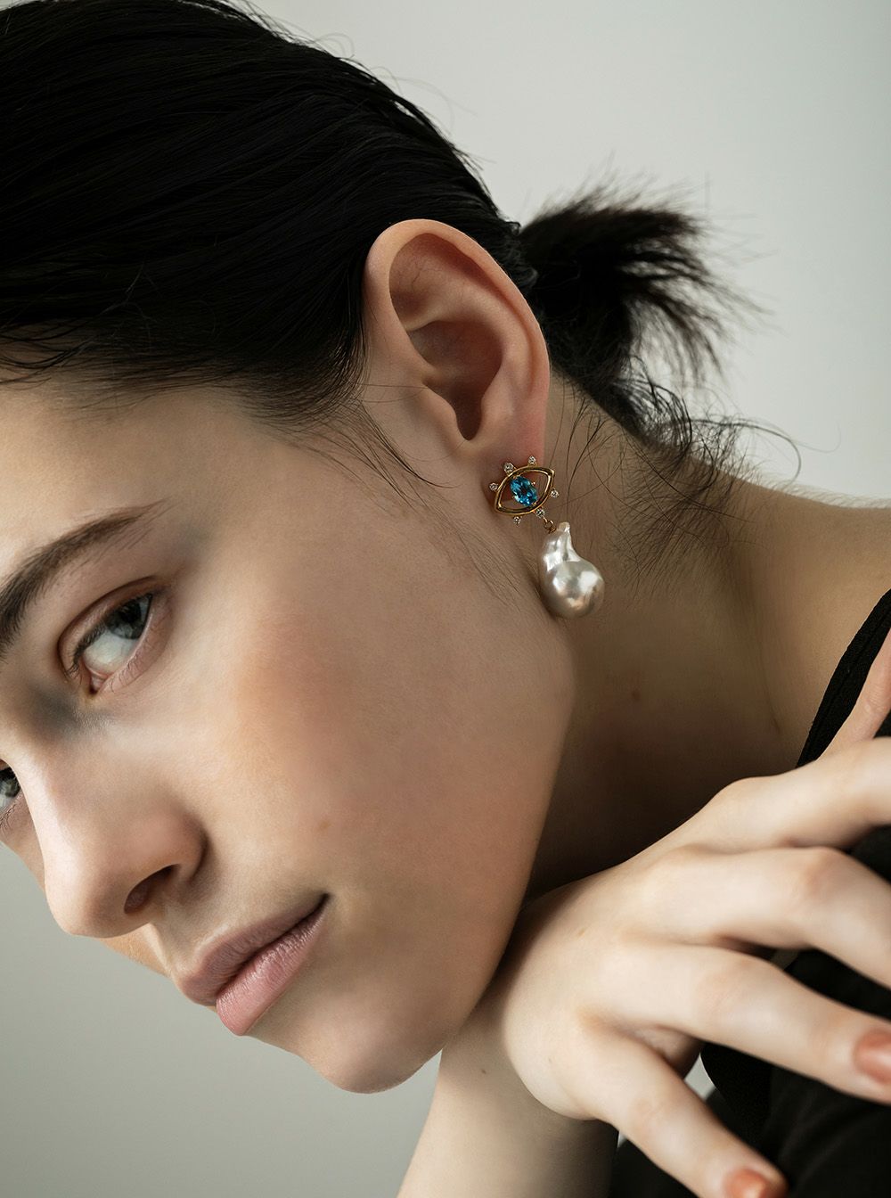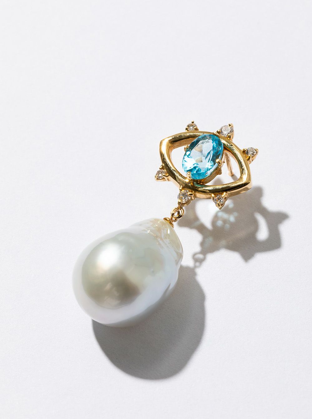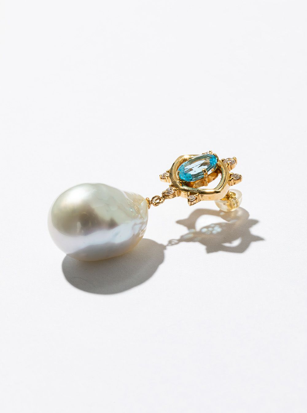 [add to Kunierika"truth"]K18YG南洋バロックパール ブルートパーズ ダイヤモンドピアス(ペア)