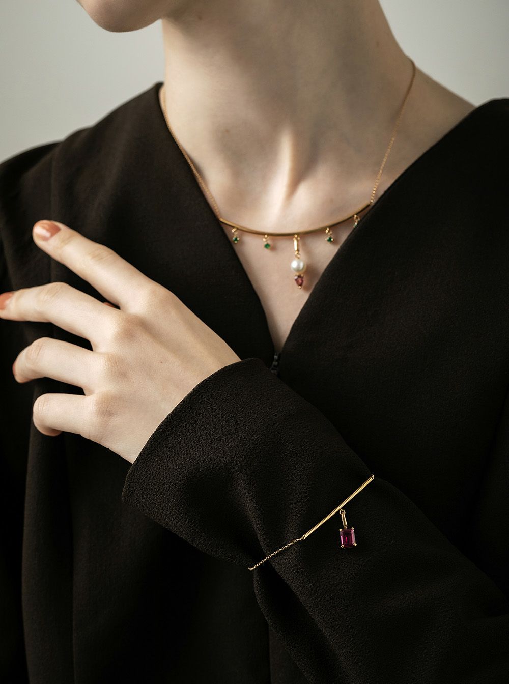 他の画像を見る [add to Kunierika"varietyA"]K18YG ロードライトガーネットチャーム付きエメラルド ネックレス 当店特別価格 ¥ 231,000 税込 お気に入りに登録する